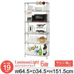 [商品名/品番] ルミナスライト スチールラック 6段 70W/IHT7018-6 [サイズ] 19mmポール/幅69.5×奥行34.5×高さ174.5cm [材質] スチール、ABS樹脂 [コー