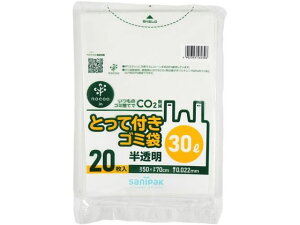 【商品説明】CO2排出削減を考えた環境配慮型のゴミ袋です。とって付きでペールに引っ掛けやすく、結びやすく持ち運びやすいです。半透明となっており、透明のごみ袋に比べて中身が透けにくいです。パッケージに取り出し口が付いており