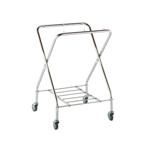 特長 自立したまま厚さ16cmに折りたためる、場所を取らない運搬カート。 ファスナー付袋もあり、様々な組合せが可能です。 材質:スチールパイプにクロームメッキ 重量:約8.2kg ●スタンディングカート袋E