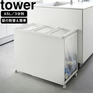 商品名 ゴミ箱 ワゴン 45l キッチン 分別 キャスター ふた付き 目隠し tower タワー 山崎実業 ペットボトル 缶 蓋付き目隠し分別ダストワゴン タワー45L 3分別 説明文 45Lのゴミ袋...