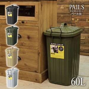 デザイン ペールカン スーパーカン 60L フタ付き ゴミ箱。素材 ポリエチレン・スチール。サイズ W36xD55.4xH62.2cm。