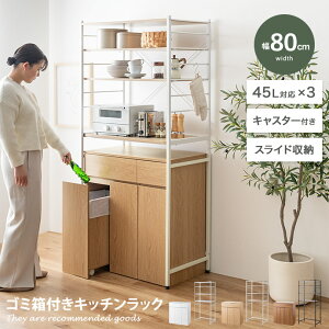 商品説明1台で空間すっきり、お部屋と調和するゴミ箱収納ラックゴミ箱に見えないデザインと使いやすさが魅力の分別ゴミ箱収納ラック。シンプルなデザインでインテリアになじみ、生活感を抑えつつ、1杯45Lの大容量。収納も豊富で、レン