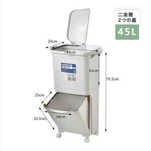 サイズ/約幅33.5×奥行41.5×高さ60.5cm ふたを開けた時の高さ:約92cm 重量/1個あたり:約1.8kg 容量/約45L ふたを含めた実容量:約48L 内容量/同色2個セット 材質/ポリプロピレン樹脂<br