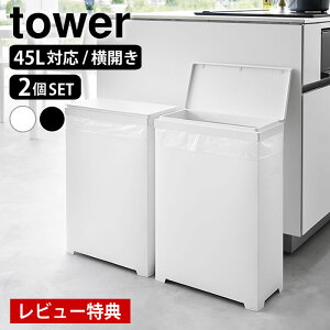 スリム蓋付き分別ゴミ袋ホルダー 45L 横開き 2個組 tower/タワー。利用場所:キッチン 台所 冷蔵庫 冷蔵庫横 サイドラック キッチンカウンター シンク下 調理台 作業台 カップボード。