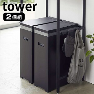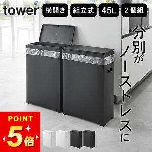 tower タワー スリム蓋付き分別ゴミ袋ホルダー 45L 横開き 2個組の解説 45リットルのゴミ袋がピッタリ!スリムな蓋付きごみ箱2個セット。 ●ごみ袋を掛けて蓋するだけ。簡単に設置できます。 ●...