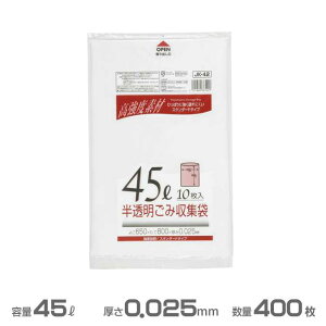 【商品説明】半透明ゴミ袋【仕様】●半透明●規格:45L●サイズ:縦800×横650×厚さ0.015mm●材質:高密度ポリエチレン●注文単位:1箱(100枚)【備考】※メーカーの都合により、パッケージ・仕様等は予告なく変更になる場合がご...