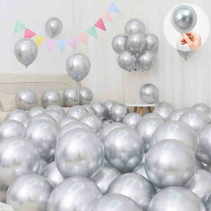 風船 バルーン シルバー 5インチ 50個入り ゴム 極厚 丸 金属風船 ラテックスバルーン メタリックカラー 光沢 飾り 誕生日 結婚式 成人式 店舗開店祝い装飾 パーティー 運動会 文化祭 バルーンアート...