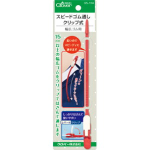 ウエストゴムのソーイング・補修に。15mm以上の幅広ゴムを、クリップでしっかりはさんですばやく通せるゴム通しです。強力クリップではさむので、通す途中でゴムが落ち