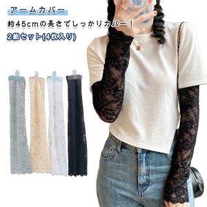 2組セット(4枚入り)約45cmの長さでしっかりカバー!アームカバー傷跡・タトゥー・色ムラなどをさりげなく隠しながら、上品で可憐なレースデザインが女性らしさを演出。夏の紫外線からしっかりガード。通勤・買い物・ドライブなど、日差