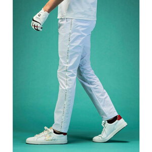 サイドに配置したブランドロゴがスタイリッシュかつスポーティな表情を形成するスラックスパンツ。ベーシックなスラックスながら、こだわりのパターンで美しいシルエットを実現。ふくらはぎ部分に膨らみを持たせた細身のテーパードが