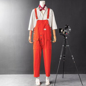 ワイドレッグ サロペット ワークパンツ ストレート ミリタリー ブラック レッド オレンジ ピンク イエロー グリーン カーキ ブルー パープル ブラウン ポリエステル 無地 オールシーズン・スタイ