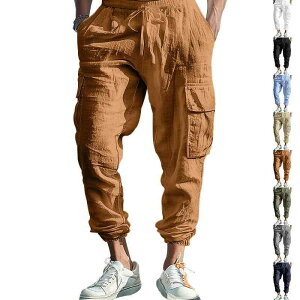 ポケット付き ワイドパンツ ストレート 薄手 綿麻 カジュアルパンツ カーキ ブラック グレー イエロー ネイビー ブルー グリーン ホワイト