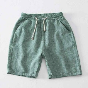 ハーフパンツ メンズ 男性用 麻 リネン ゆったり ストレート 無地 ウエストゴム 普段使い 部屋着 薄手 春夏 ブルー 原麻色