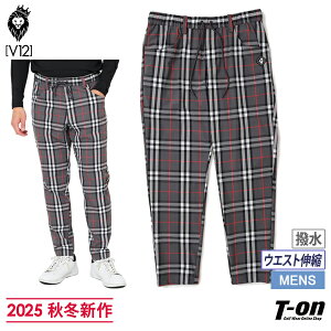 T-on ティーオン メンズ商品詳細 ゴルフウェア ブランド名 V12 ゴルフ ヴィ・トゥエルブ 商品名 パンツ ロングパンツ ストレッチ 撥水 ナイロン素材 ウエストゴム イージーパンツ タータンチェック柄...