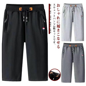 メンズ ジャージ 半ズボン ウエストゴム クロップドパンツ 短パ