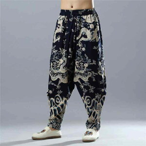 パンツ メンズ 男性用 カジュアルパンツ 中国風プリント ドロップクロッチパンツ ワイド 龍柄 コットン リネン イージーパンツ ロングパンツ ウエストゴム 小脚 普段使い・カテゴリ: カジュアルパンツ...