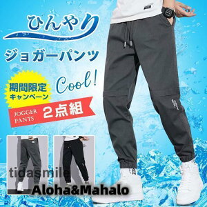 ジョガーパンツ 2点組 接触冷感 ひんやり 涼しい メンズ イージーパンツ スポーツ 部屋着 夏 薄手 軽い 軽量 ボトムス ウエストゴム 通勤 通学【カラー】ブラック&グレー1点ずつ ブラック2点組...