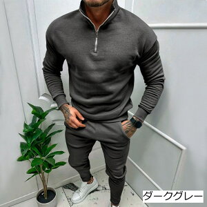 裏起毛 上下セット メンズ 秋 冬 長袖 ゴルフウェア 暖か 保温 防寒 セットアップ ハーフジップ トレーナー ロング丈 ウエストゴム スウェットパンツ ロングパンツ トップス ボトムス おしゃれ カジュアル...