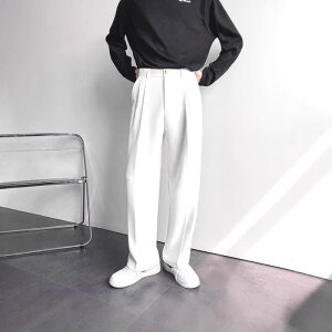 スラックス メンズ 白 ゆったり ストレート ロングパンツ カジュアルパンツ ビジネスパンツ 無地 ウエストゴム 伸縮性 通気性 ホワイト系