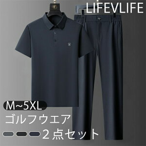 メンズ セットアップ 上下セット 薄手 ポロシャツ 半袖 ロングパンツ 接触冷感 通気性 ストレッチ生地 カジュアル 快適 通勤着 部屋着 紳士服 オフィス 春服 秋服 30代40代50代