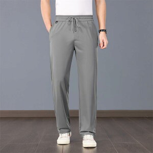 パンツ メンズ 男性用 ズボン 夏 接触冷感 薄手 スポーツ カジュアル ストレート ウエストゴム 7分丈 ポケット付き 無地 涼しい 伸縮性 イージーパンツ