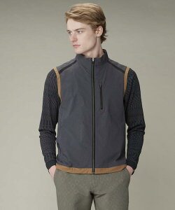 天然素材の様なサラッとやわらかい風合いが特徴でストレッチ性のある素材です。胸元のファスナーディテールがデザインポイント。軽量なプレーアウターベストで、シンプルでコーディネートしやすいアイテムなのでゴルフだけでなくタウ