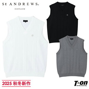 T-on ティーオン メンズ商品詳細 ゴルフウェア ブランド名 セントアンドリュース St ANDREWS 商品名 ベスト Vネック ニットベスト 天竺×ミニケーブル編み 軽量 エコ素材 手洗い可 シルバーロゴ刺繍付...