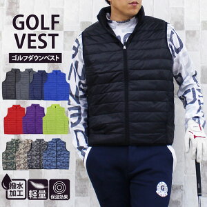 送料無料 メンズ ゴルフウェア 中綿 ダウンベスト アウター ジャケット ブラック ネイビー グレー ブルー レッド 黒 カモフラ M L LL サイズ