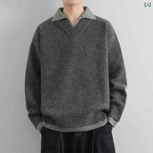 厚手の ポロ襟 セーター メンズ 冬 日本の レトロ コントラスト カラーの ラペル ウール.オシャレデザイン.シンプルスタイル。詳細: コントラストカラー加工:無鉄処理生地: -基本スタイル:若々し...