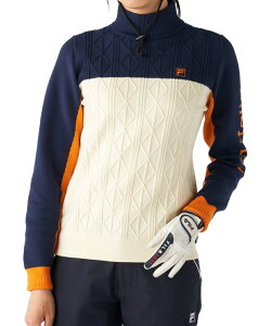 FILAらしいブロック切替デザインが特徴で、スタイリングのアクセントに。抗ピリングアクリルやモダールを含む4者混ニットで、肌触りも抜群です。