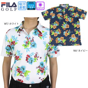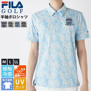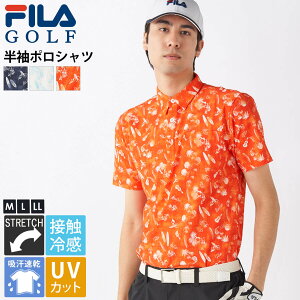 フィラ ゴルフ 743602 メンズ モックネック総柄半袖シャツ 吸汗速乾 UVカット 接触冷感 FILA GOLF リサイクル素材を使用したストレッチ性のあるモックネックシャツ。接触冷感機能付き。