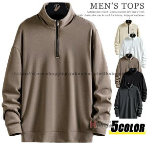 トレーナー 長袖 メンズ ハーフジップ スウェット ゴルフウェア おしゃれ 無地 秋物 ハイネック カジュアル トップス色 白 ベージュ 黒 グレー ブラウンサイズ M L XL 2XL 3XL 4X...