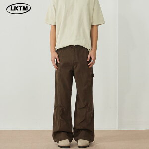 カジュアルパンツ 男性用 メンズ アメリカンレトロスタイル ストレートパンツ ロングパンツ 綿 中厚 シーズンレス