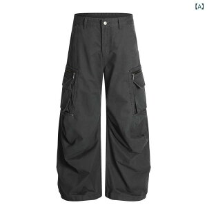 カーゴパンツ メンズ 男性用 レトロ ミリタリー ワイドパンツ ルーズフィット コットン 解体再構築 デザイン 深グレー アプリコット・スタイル: ストリート・対象: 10代後半-20代・種類: ワークパンツ...