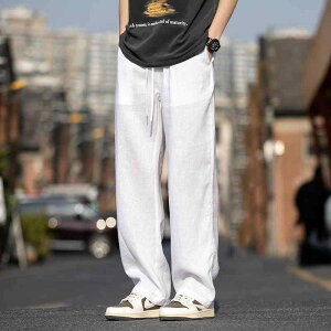 麻パンツ メンズ 男性用 リネンパンツ ストレートパンツ ワイドレッグ 通気性 春夏 薄手 カジュアル 中腰 白 黒 紺 麻色 M L XL 2XL 3XL 4XL 5XL