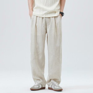 パンツ メンズ 男性用 リヨセル麻 リネン 混紡 イージーパンツ ストレートパンツ ロングパンツ 薄手 無地 シンプル カジュアル 普段使い 部屋着 春夏 ブラック 黒 ベージュ・スタイル: ??・淘...
