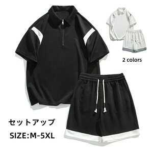 上下セット 夏 メンズ 半袖ポロシャツ セットアップ ルームウェア おしゃれ ワッフル ジャージ上下 ゴルフウェア スポーツ 夏服 お兄系 通勤 通学 カジュアル素材 ポリエステルカラー 白|黒|グレーサイズ...