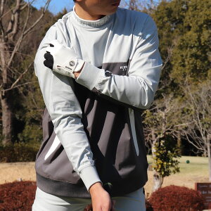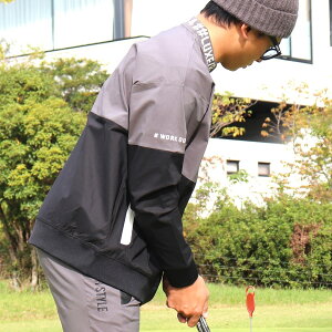 撥水 ストレッチ 切り替え モックネック プルオーバー メンズ ゴルフウェア セットアップ対応 撥水加工 カッパ 雨具 レインウェア 秋 秋服 春 春服 長袖 ハイネック ロゴ プリント
