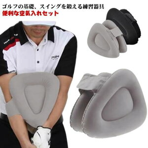 ゴルフの基礎、スイングを鍛える練習器具三角トレーナーを使って素振りをすることでターンで重要な両腕の三角形を自然に保てる使わないときは空気を抜いてコンパクトにドライバーからアイアン、パターまで、ボディーターンの基本...