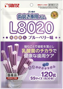【商品説明】・小型犬にも噛みやすい弾力のあるセミハードタイプの歯磨きガムです。噛むことで歯垢を落とし、L8020乳酸菌のチカラで健康な歯周の維持をサポートします。・お口がさわやかに香るブルーベリー味。〇原材料(成分)でん粉類、