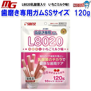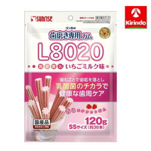 メーカー:サンライズ品番:SHG-076乳酸菌のチカラで健康な歯周ケア!サンライズ ゴン太の歯磨き専用ガム SSサイズ L8020乳酸菌入り いちごミルク味 120g対象超小型犬、小型犬機能おやつライフステージ生後7ヵ月以降特長...