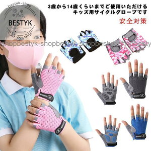 3歳から14歳くらいまでご使用いただけるキッズ用サイクルグローブです手のひらのパッドが衝撃を吸収しますメッシュ素材と通気孔で汗をかいても蒸れにくい構造伸縮性に優れているので手にぴったりフィットしやすいイク...