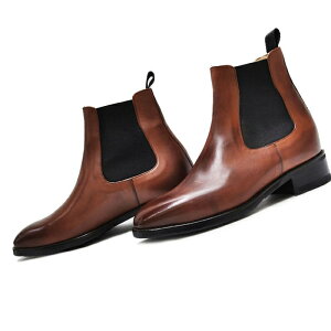 【着脱が簡単】簡単に脱ぎ履きができる、両サイドに伸縮性のある素材を使用。シンプルでクラシックなサイドゴアブーツ。装飾ないアッパーでシンプルデザインで高級感が溢れるビジネスブーツ、大人男達に欠かせない一足...