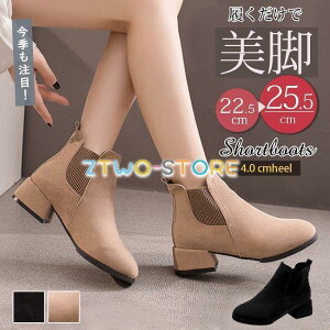 サイドゴアブーツ レディース ブーティー スエード調 チャンキーヒール 太ヒール ミドルヒール 歩きやすい 大きいサイズあり 秋冬 ショートブーツ スリッポン 靴 シューズ フェイクレザー 履きやすい...