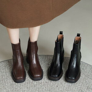 ショートブーツ レディース ローヒール 厚底 秋冬 シューズ 大きいサイズ 靴 無地 カジュアルシューズ 美脚 歩きやすい 着痩せ効果 ★素材:革★ヒール高さ:3.5cm★アッパーの高さ:約12.5cm★足幅:普通...