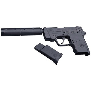 サイレンサーの取り外しができる。 飛距離25m以上(最適角度で発射したとき) メーカー クラウンモデル 対象年齢 10歳以上用 全長 268mm 重量 133g 装弾数 7発 弾丸 6mmBB弾 キット内容 ガン本体