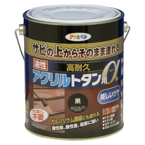 アサヒペン 油性高耐久鉄部用 ツヤ消し黒[1.6L] 株式会社アサヒペン ■色目 ツヤ消し黒 ■特長 特長 ●サビの上から直接塗れる、さび止め兼用の上塗り塗料。 ●「高耐久」鉄部塗料 ●ガルバリウムへの塗装可能...