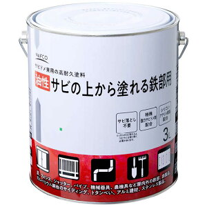 【用途】●鉄製の扉、フェンス、シャッター、パイプ、機械器具、農機具等のあらゆる鉄部、鉄製品の上塗り兼用サビ止め。【特長】●特殊防錆剤の配合により、サビを落とさずにサビの上から直接塗れます。●サビ止めと上塗りが同時にで