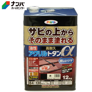 【仕様】●商品サイズ:240x240x350mm●内容量:12kg●合成樹脂(アクリル樹脂)、顔料、防サビ剤、有機溶剤●用途:屋根、とい、ひさし、下見板、へいなどのトタン板、カラートタン、ガルバリウム鋼板、屋外の鉄部や木部●標準塗り面積(1