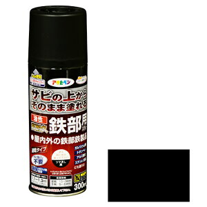 商品の特徴 ◆アサヒペン 油性高耐久鉄部用スプレー 300ml ツヤ消し黒 300ml Mクロ サビの上からそのまま塗れる、サビドメ兼用の鉄部用塗料です。 屋内外の鉄部・鉄製品の上塗り兼用サビ止め。特殊防錆剤の配合により...